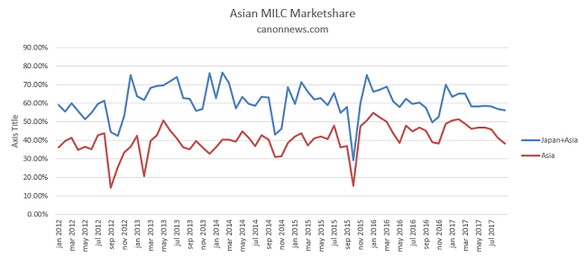 If we look at Asia MILC in particular, we see that it continues to hover around 60% of the units shipped, with NA, Europe splitting the remaining 40% in between them.